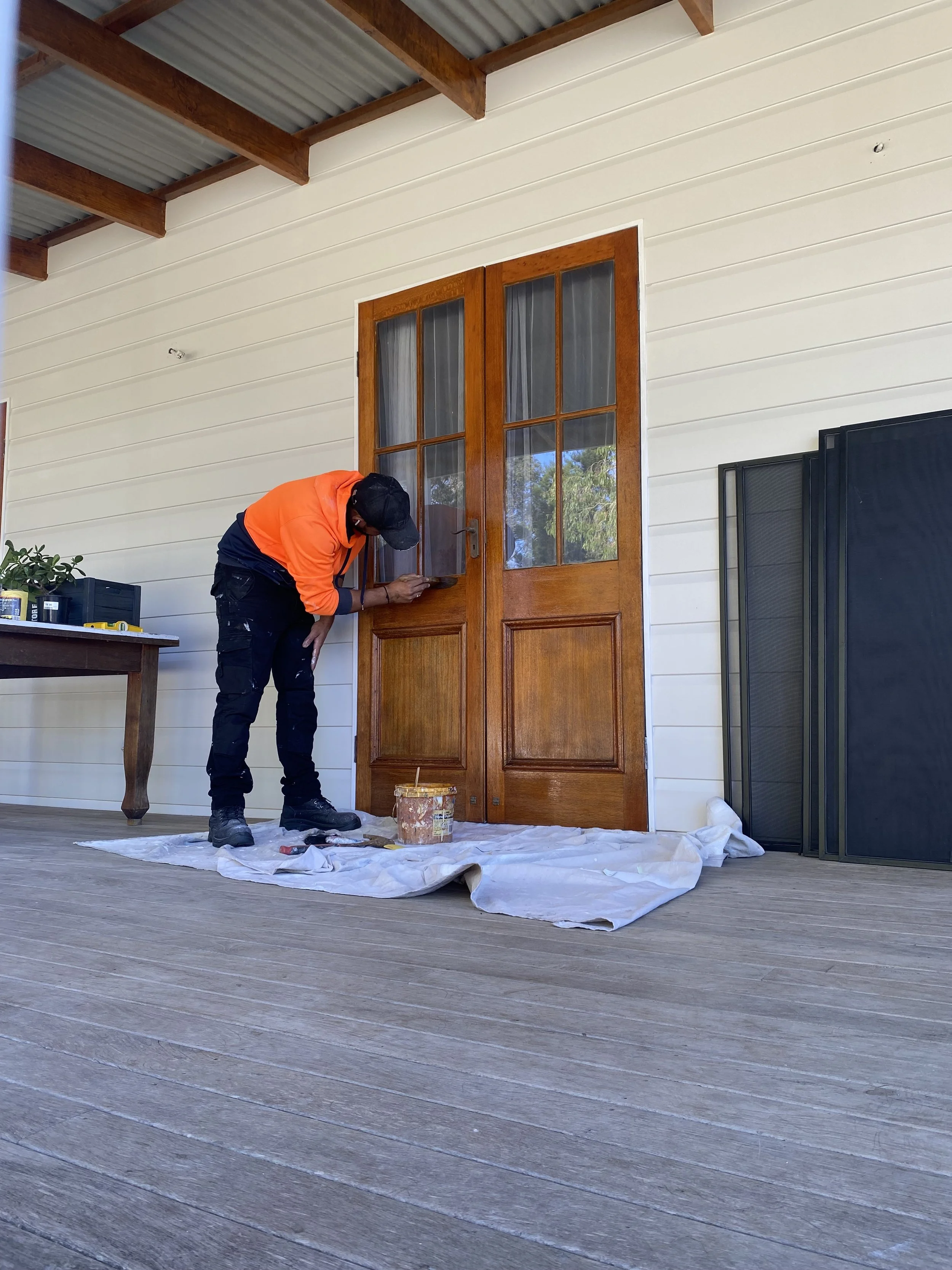 “A good painter cleans to paint; they do not paint to clean”. This is a quote that BUFO follows closely, especially with timber finishes. Prior to varnishing/oiling timber we either pressure washing for durable outdoor pieces (like the bench shown on the right) or a gentle wash with mild soap and water to remove dirt, mildew and other contaminants. After the wood is clean and fully dry, apply two even coats of varnish or oil, allowing appropriate drying time between coats. The finish will penetrate and protect the timber, renewing its appearance and durability.